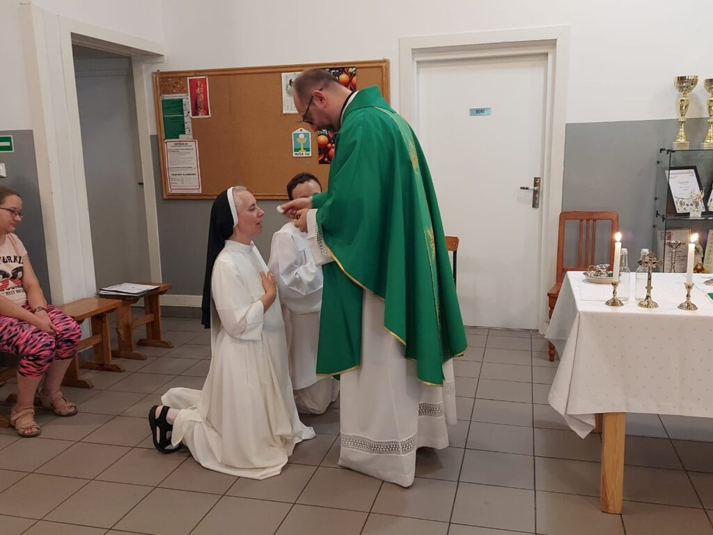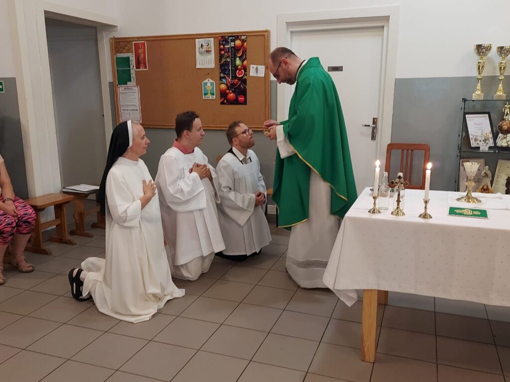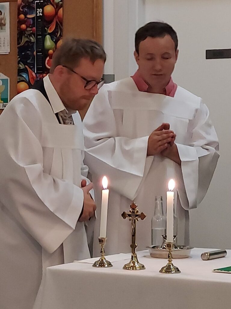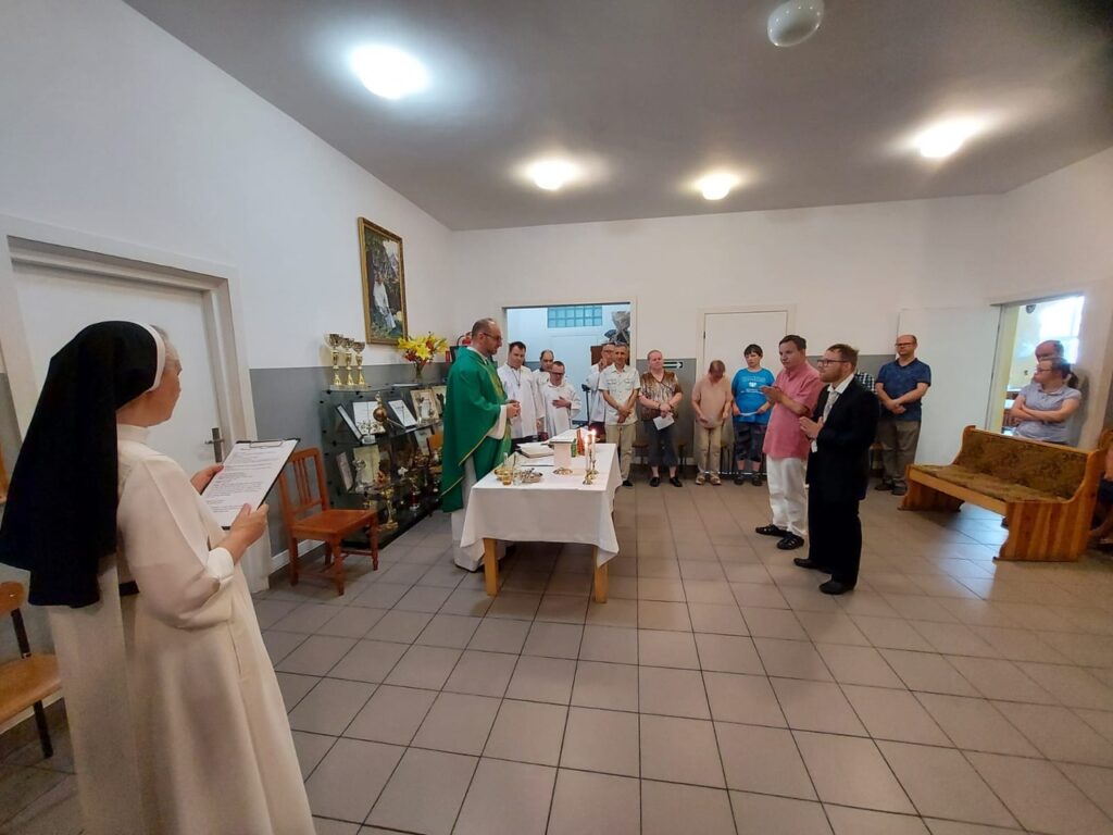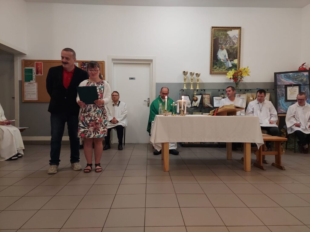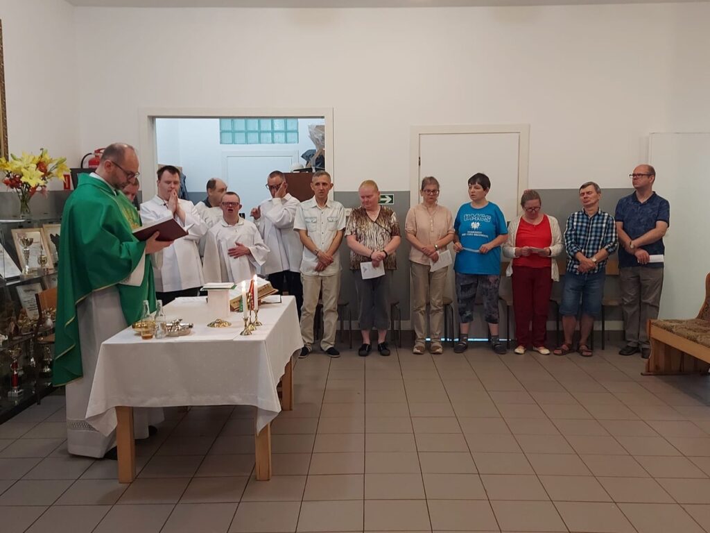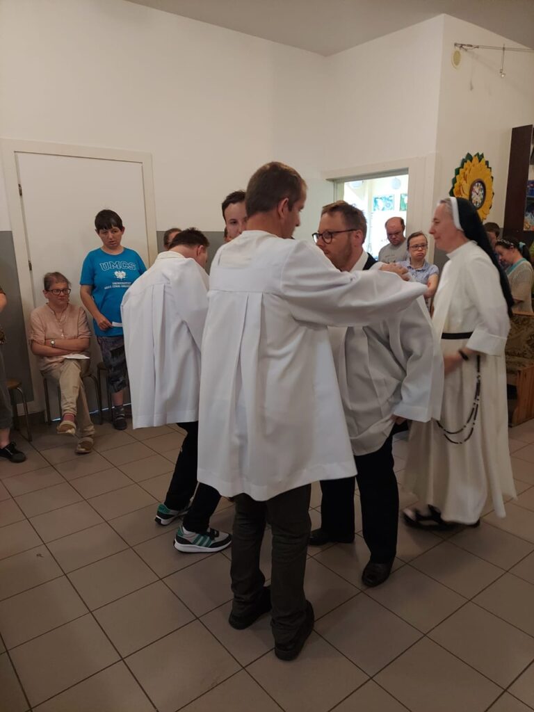 Podczas Mszy Świętej 04.07.2024 r. nowi uczestnicy z WTZ przy ul. Gospodarczej dołączyli do grona ministrantów. Mateusz Ś. oraz Filip R. zostali pouczeni i przygotowali się służyć Bogu i ludziom podczas liturgii. Komże zostały wręczone kandydatom przez doświadczonych już ministrantów, a następnie poświęcone przez ks. Krzysztofa. Wszyscy zgromadzeni przywitali nowych ministrantów gromkimi brawami. Podczas Mszy Świętej Mateusz i Filip po raz pierwszy służyli przy ołtarzu.