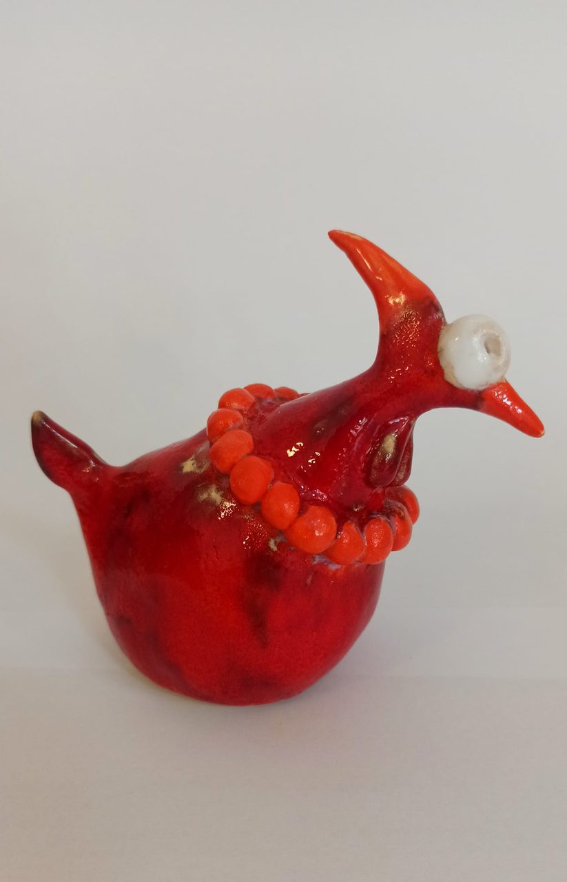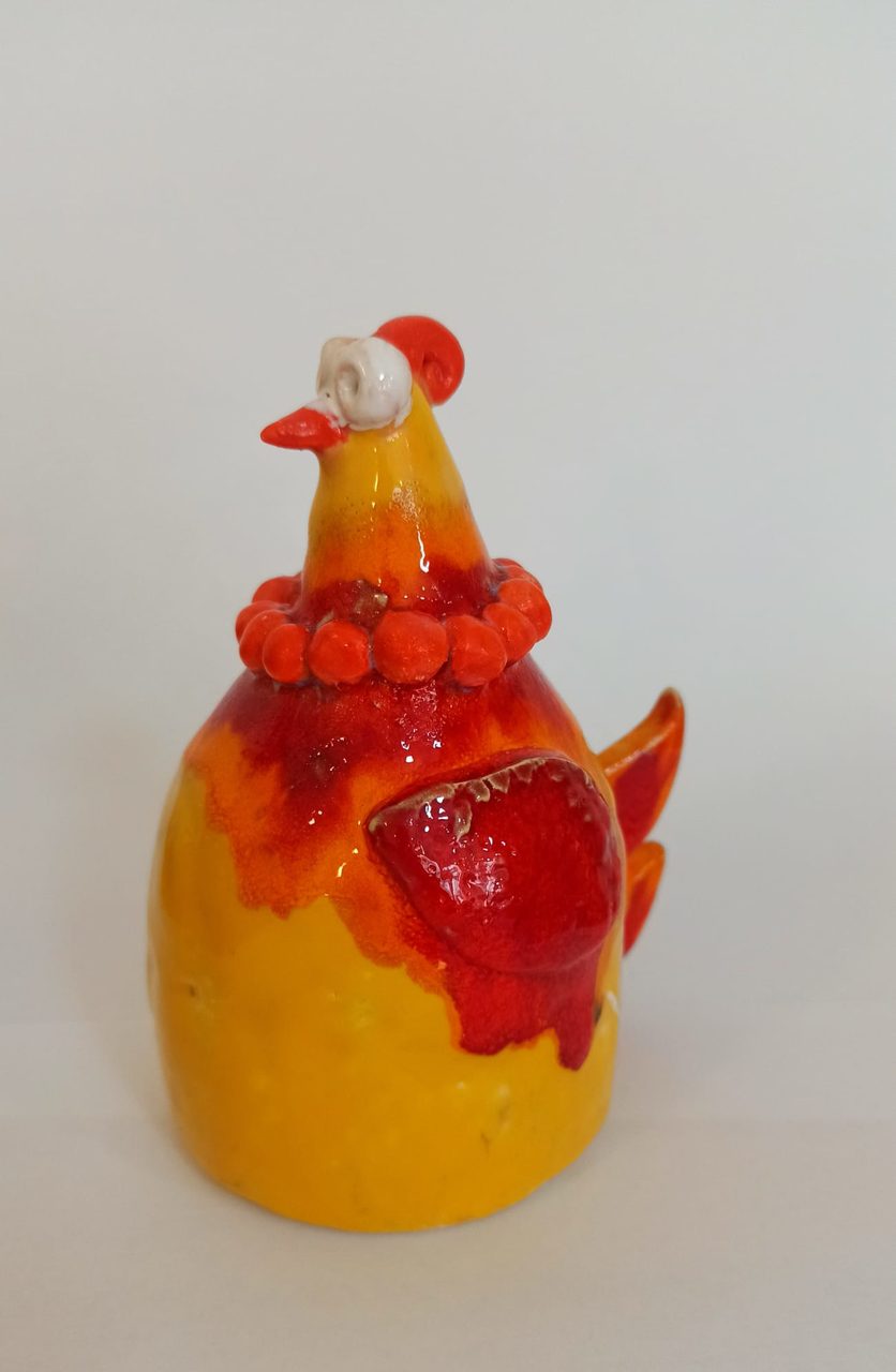 Kury  i rybki z gliny, wypalane