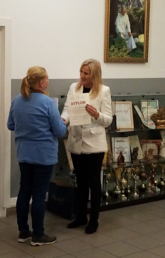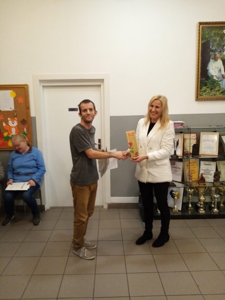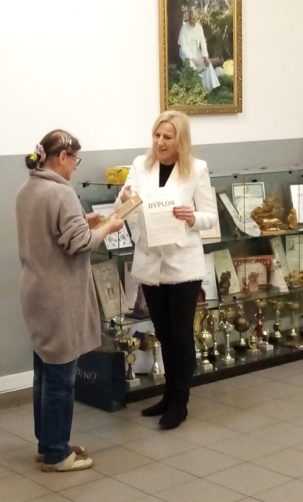 Miłym zaskoczeniem było otrzymanie dyplomu i nagrody rzeczowej, na ręce instruktorów przygotowujących i nagrywających uczestników: P. Katarzyny T.-K. i Emilii G.-W., dla całego WTZ.