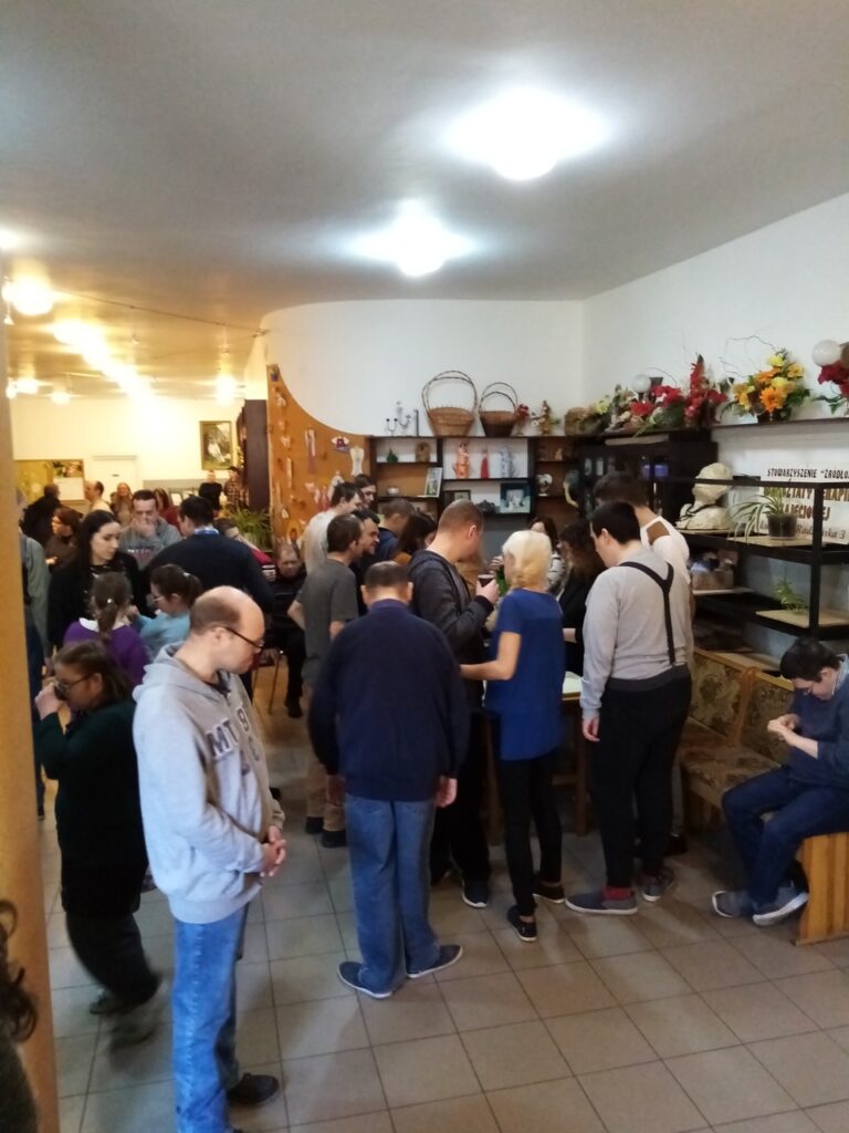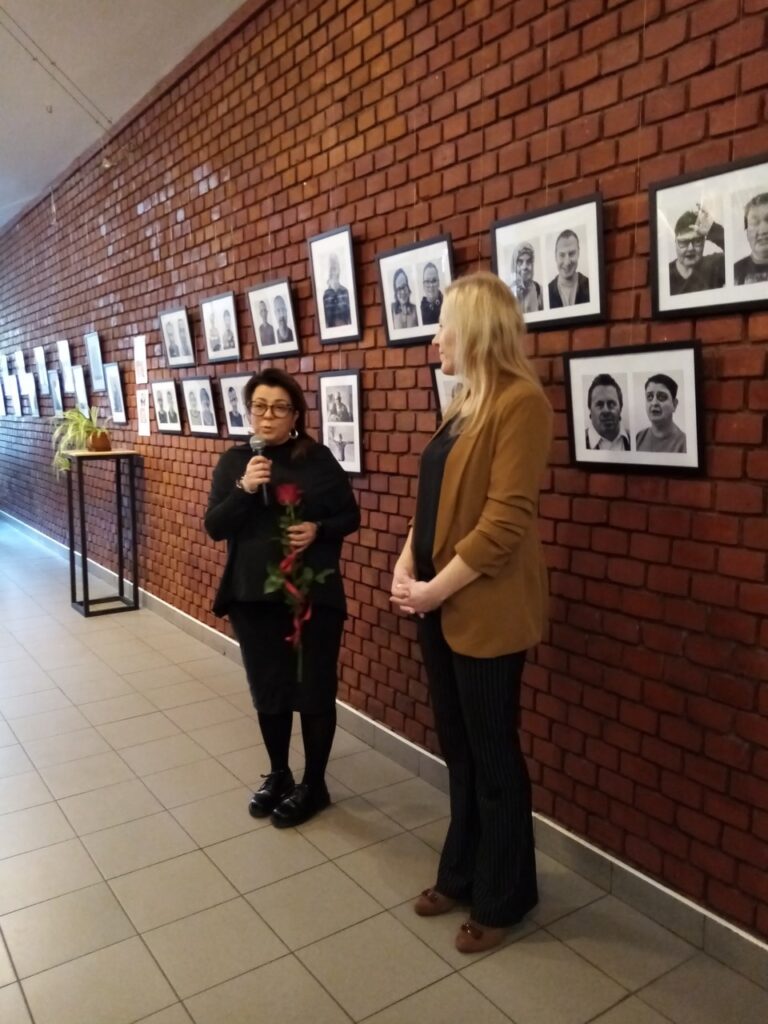 Wystawę otworzyła, w imieniu P. Prezes, kierownik WTZ przy ul Radzyńskiej, P. Małgorzata Figiel, która podziękowała wszystkim pozującym uczestnikom oraz P. Emilii oraz P. Michałowi, głównych inicjatorów projektu i wystawy. Jako instruktorka pracowni komputerowo-fotograficznej, P. Emilia Gałczyńska – Wąsik przybliżyła cały proces powstawania zdjęć, aparaty, które były używane podczas sesji zdjęciowej oraz techniki ich wywoływania. Uczestnicy wręczyli także kwiaty P. Emilii oraz, na ręce P. Małgorzaty, P. Prezes Barbarze Baczewskiej, założycielce Galerii „Źródło”.